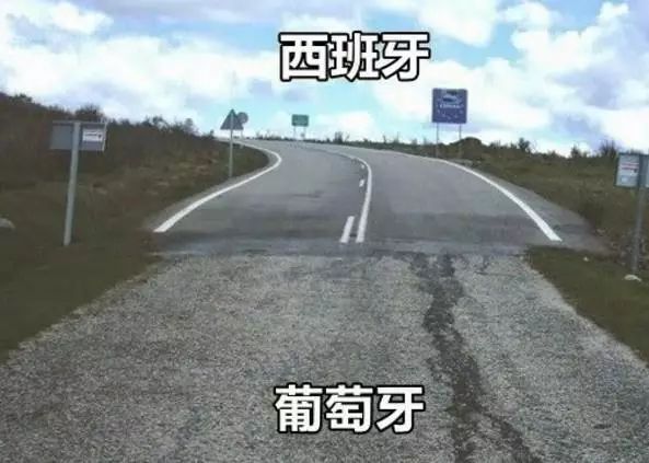 葡萄牙和西班牙的邊界線,看來的確是西班牙經濟更要發達一些,這馬路就說明了一切。