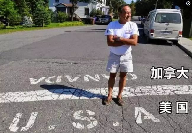 加拿大和美國的邊界線,感覺這個邊界線好隨意,閑著沒事可以去國外遛個彎。