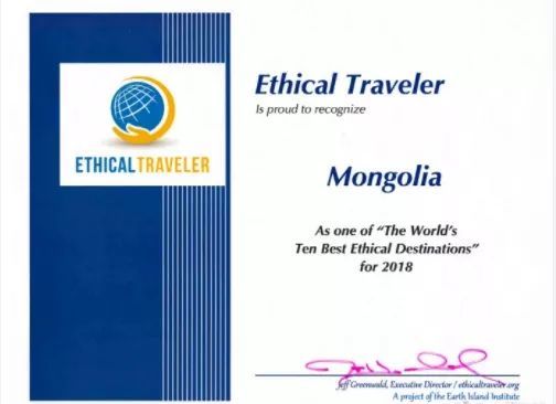 由總部設在美國加利福尼亞州伯克利市的誠信旅行者非政府組織舉辦的活動中,蒙古國連續第三次次被評為全球最適宜誠信旅行的十佳國家之一。