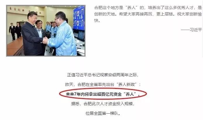 未來七年內(nèi),合肥將拿出超百億元資金,從引進(jìn)人才、培育人才、創(chuàng)業(yè)扶持等多個(gè)方面推出多重優(yōu)惠政策,吸引各類人才在肥創(chuàng)新創(chuàng)業(yè)。據(jù)了解,合肥此次人才資金投入規(guī)模,位居全國(guó)第一梯隊(duì)。