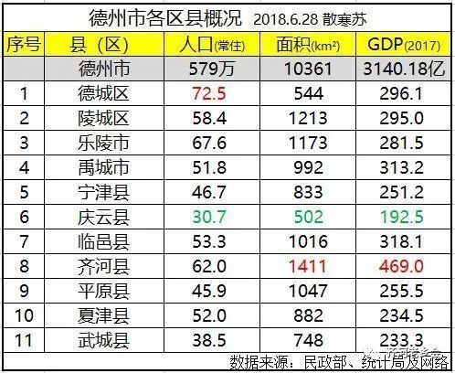 德州市各區縣:齊河縣面積第一,齊河縣GDP第一