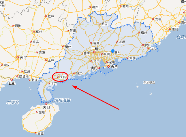 從以上地圖上看茂名在廣東省地圖上的地理位置屬于較為尷尬的位置,基本屬于靠近沿海地區(qū),往西又和廣西的玉林地區(qū)接鄰,這就從行政劃分上有效地阻隔了茂名地區(qū)貿易往來的便利性。