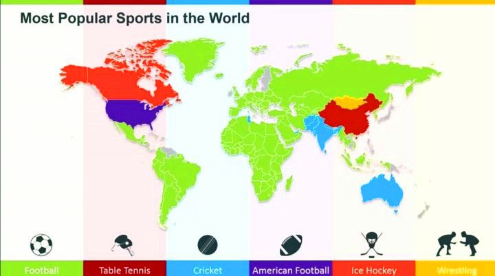 04、各國人民最愛的體育運動,足球(綠色)統治了世界上大部分的地方。小編一直以為我國人民愛的是足球,萬萬沒想到…也許是外國人對我們的刻板印象吧!