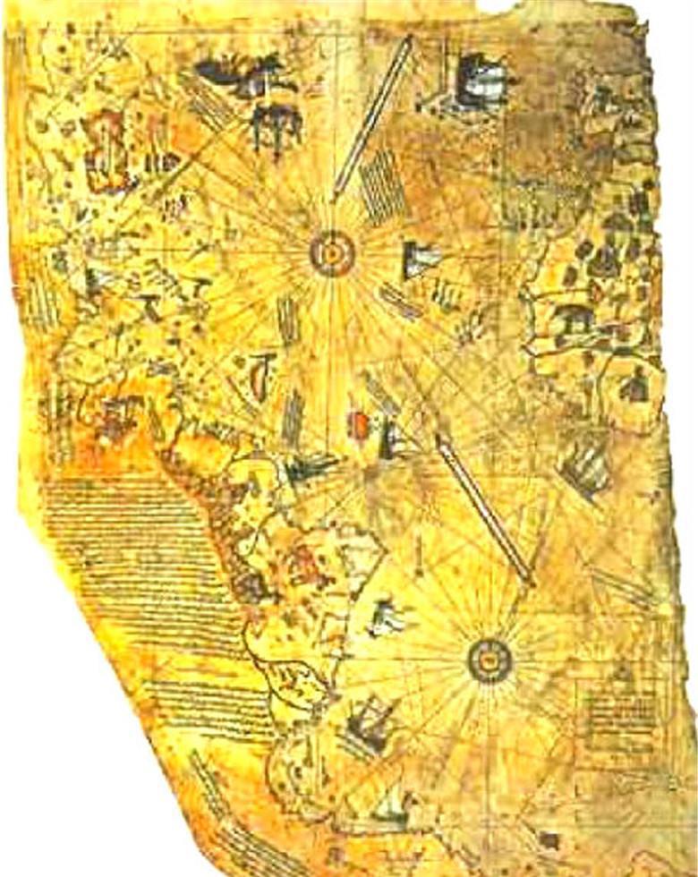 科學(xué)家們找到了古地圖的原件,原來是土耳其帝國艦隊(duì)的海軍上將皮爾·雷斯于1513年繪制的地圖。這份地圖在南極洲為人類發(fā)現(xiàn)200年前,便將這塊大陸給繪制出來了。不過,地圖上的南極洲,是一種沒有冰雪的狀態(tài)。皮爾·雷斯地圖上的南極洲,和如今世界地圖上的南極洲像極了,尤其是南極靠近大陸中央的部分,相差無幾。