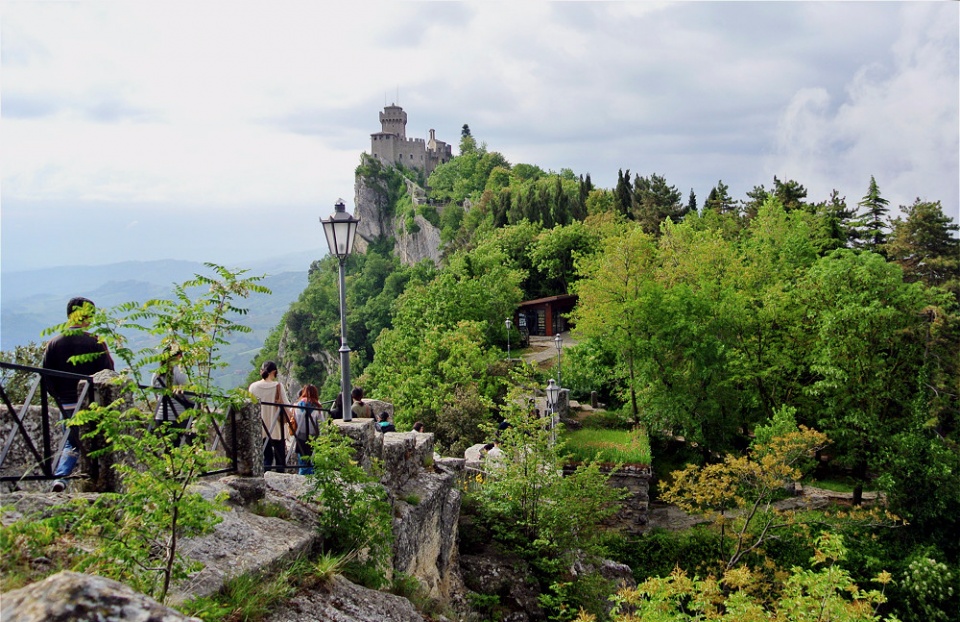 Rocca Guaita 瓜伊塔要塞,山城最高點,建于十一世紀。曾被作過監(jiān)獄。現(xiàn)因沒有罪犯,已多年沒有用了。也是明信片、郵票上的標志性建筑。全國60多平方公里的秀麗景色幾乎可盡收眼底。