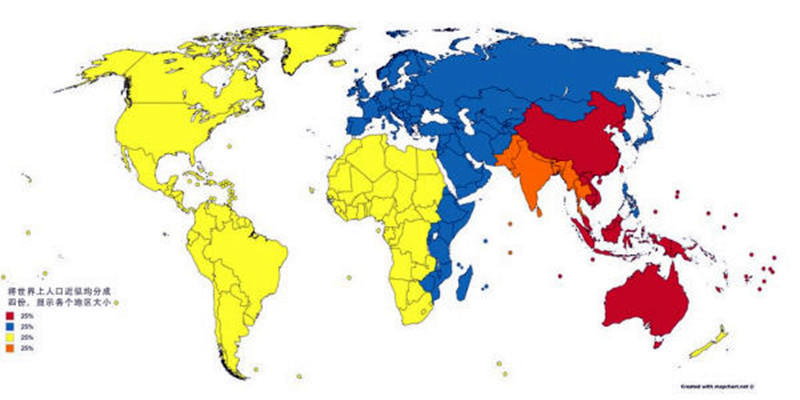 如果把全世界的總人口分成四份,大概就是這個樣子!