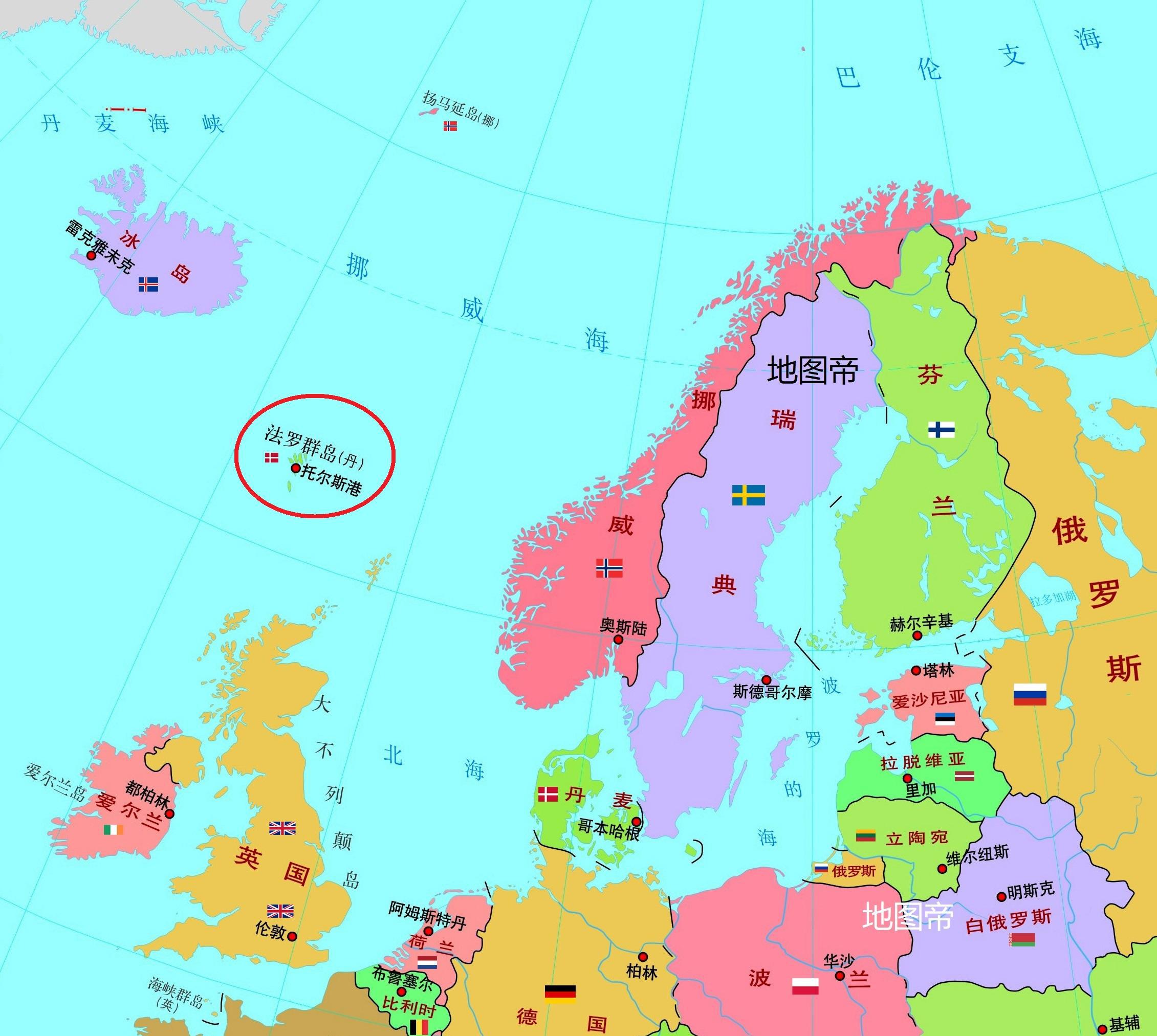 公元1814年,挪威脫離丹麥。但當時是有條約的,就是格陵蘭島和法羅群島依然留在丹麥。所以,雖然在地理上,法羅群島離英國更近,但實際上和英國沒有任何關系。