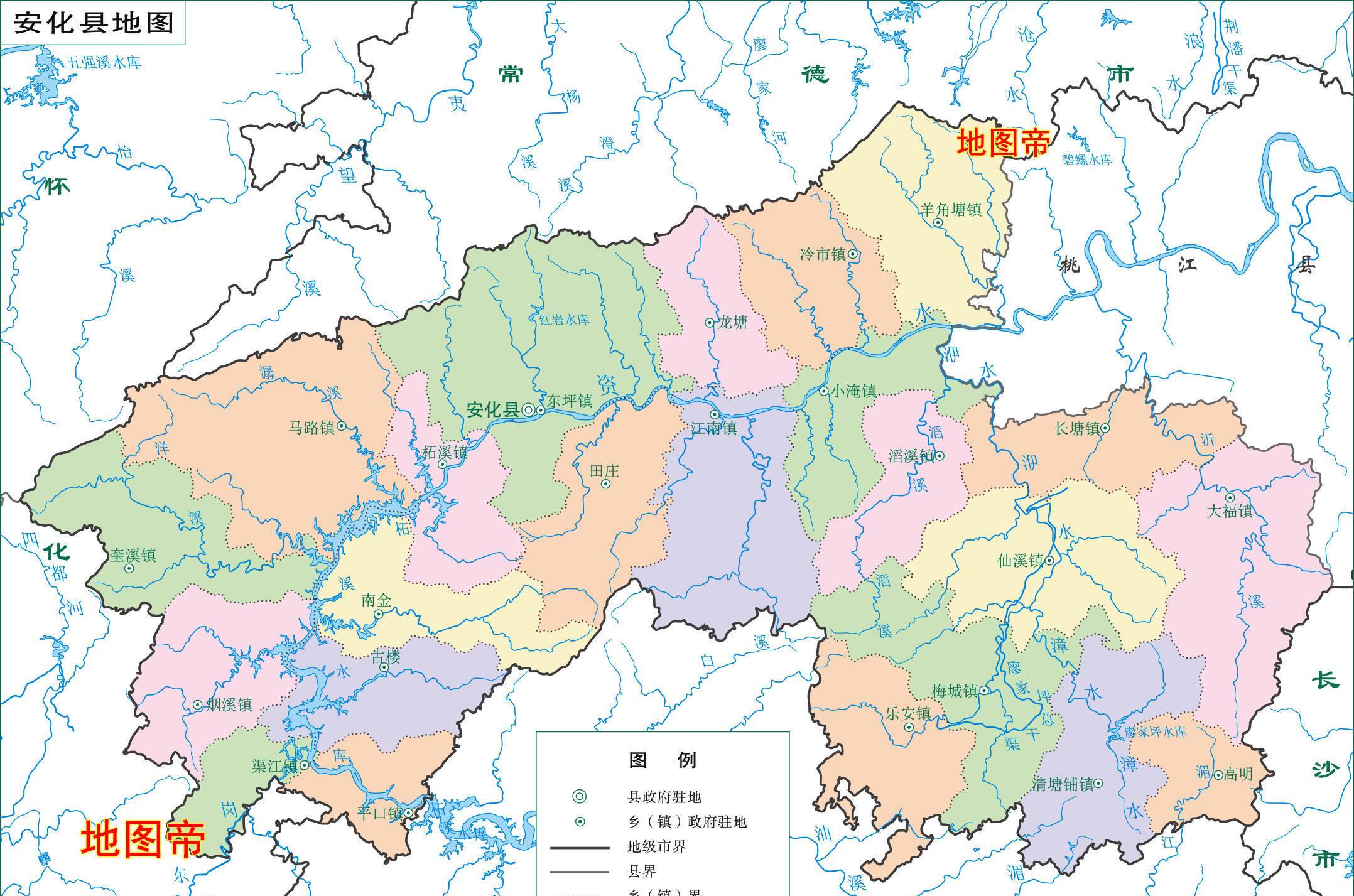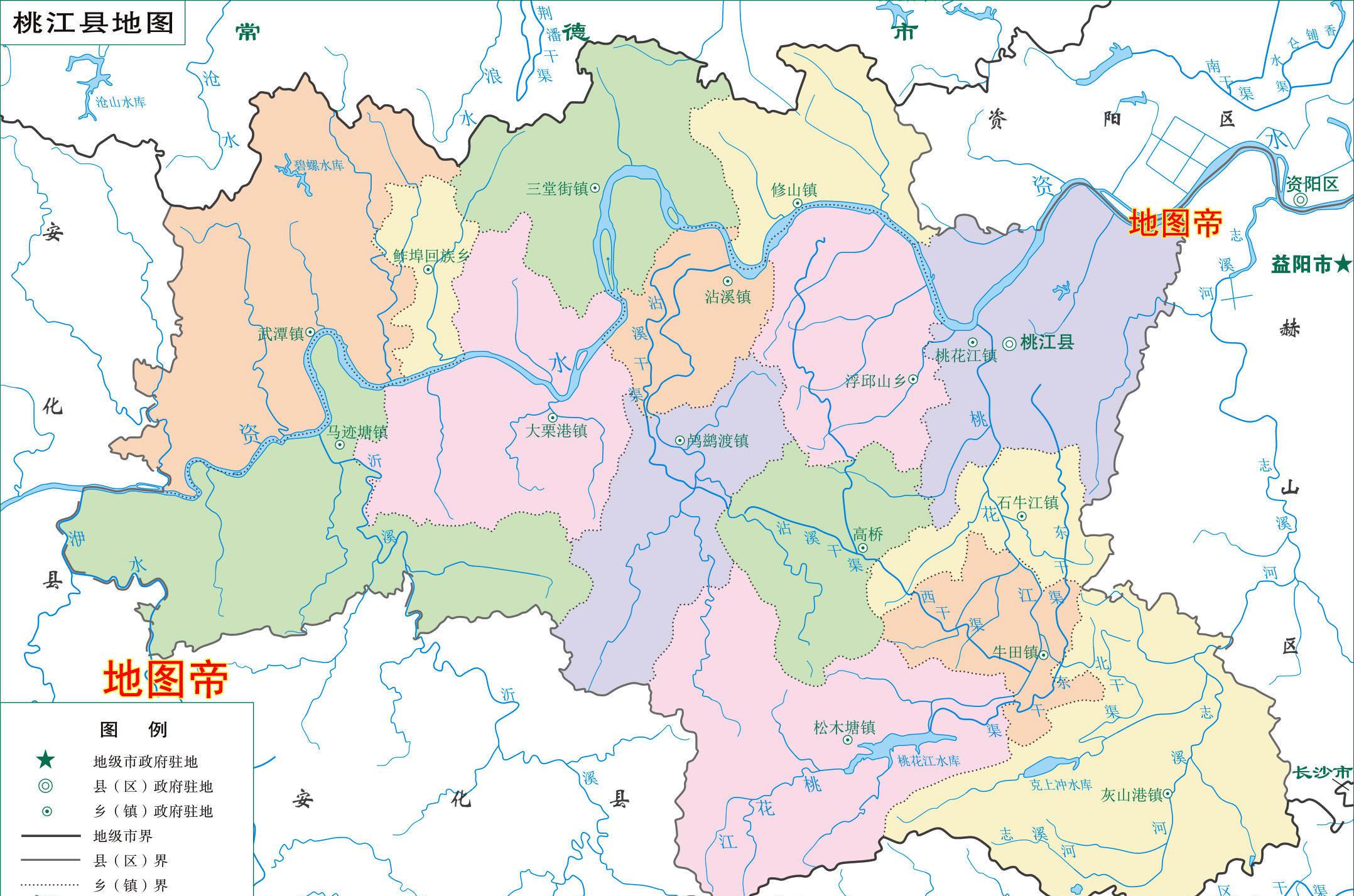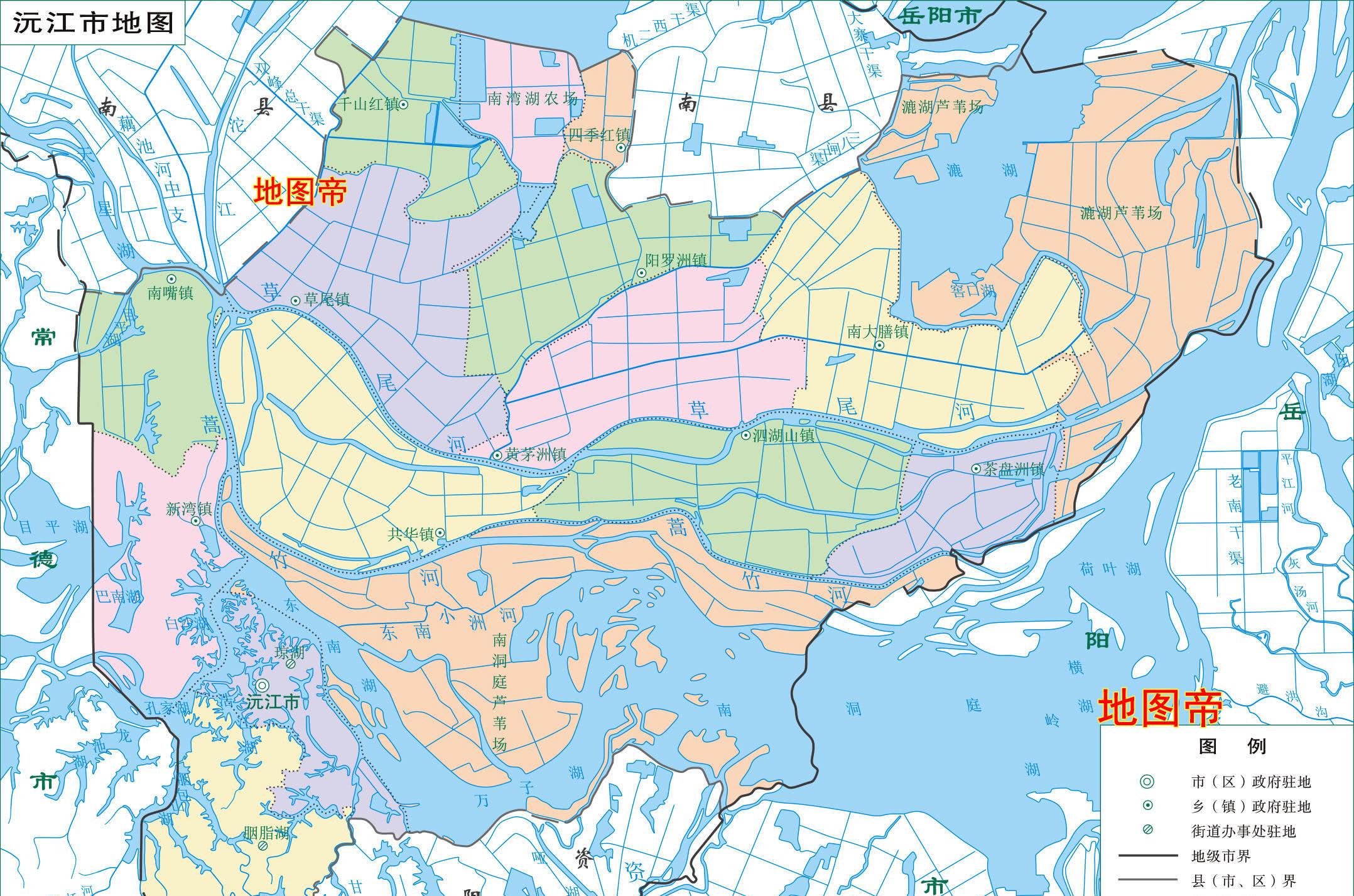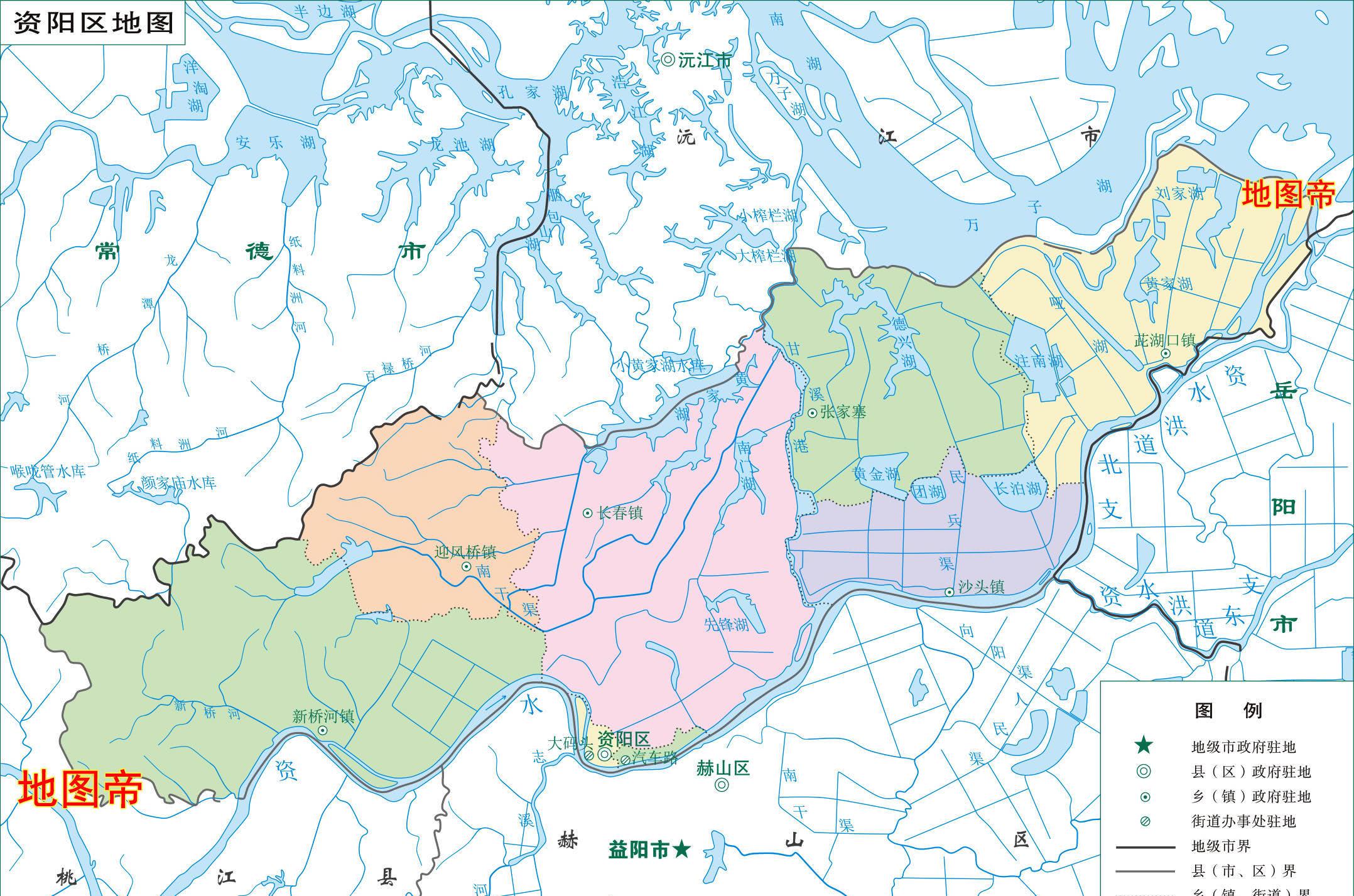 湖南益陽市高清地圖,有中國唯一長江泥沙堆積,人工圍筑而成的縣