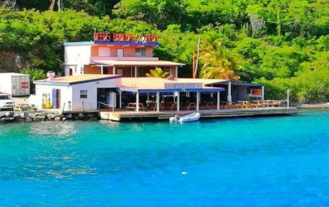 牛肉島是英屬維爾京群島一個重要島嶼,是該群島的機場所在地。下圖有該島的碼頭和瀉湖: