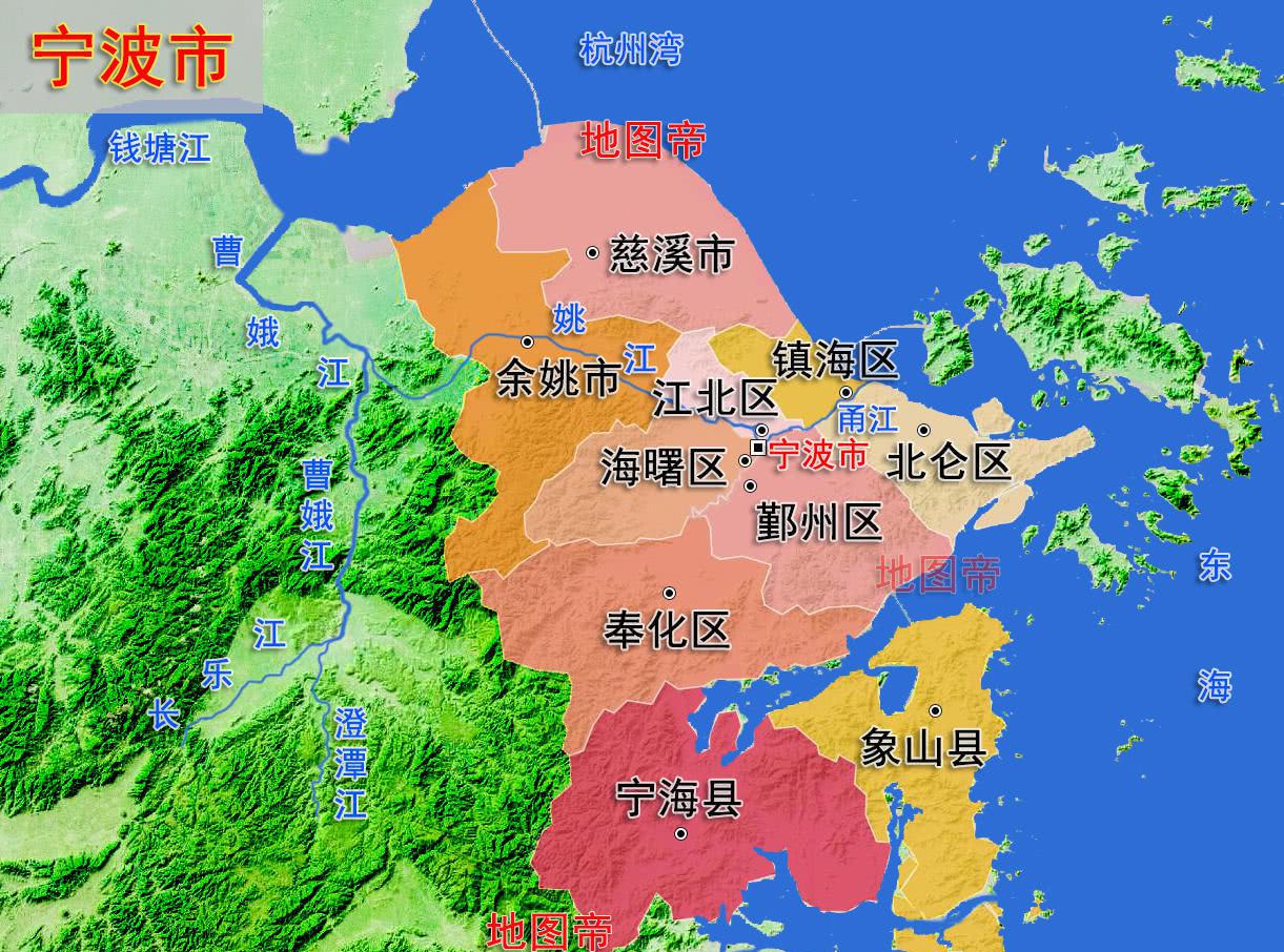 浙江寧波6區(qū)高清地圖,越王勾踐曾在此筑城 (2019-3-22 14:2:11)