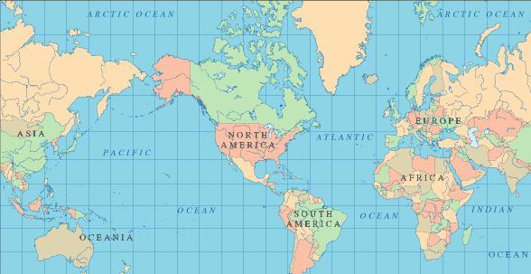(以美國(guó)為中心的世界地圖)