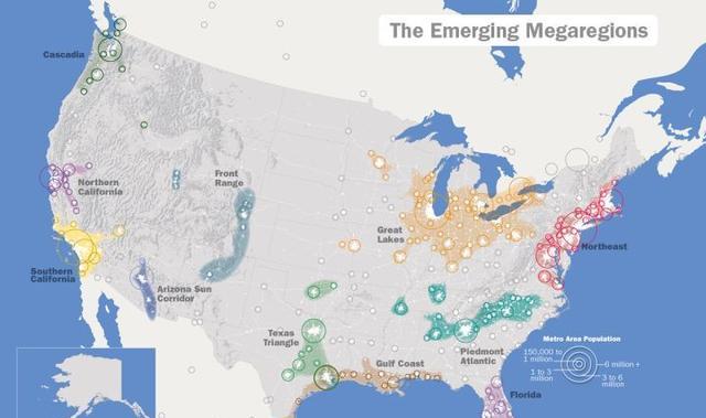 地圖看美國(guó):美國(guó)領(lǐng)土四極點(diǎn)、美國(guó)正在發(fā)展的11個(gè)大都市帶等