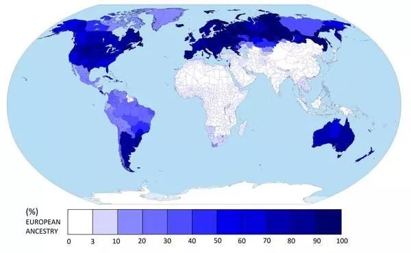 七,世界各地歐洲后裔占該地區人口的百分比。