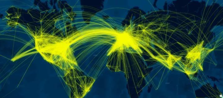 八,全球航班圖;世界三極美國、歐洲和東亞。