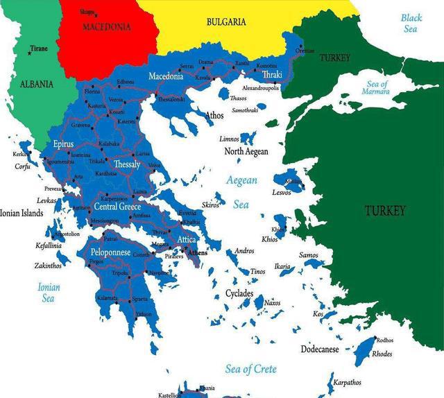 從地圖上可以看出,希臘和土耳其之間的邊界線幾乎達到了土耳其的大門。海上所有的島嶼幾乎都被希臘占領了。一些島嶼距離土耳其大陸只有幾公里。一直傲慢專橫的土耳其怎么能如此頑固?