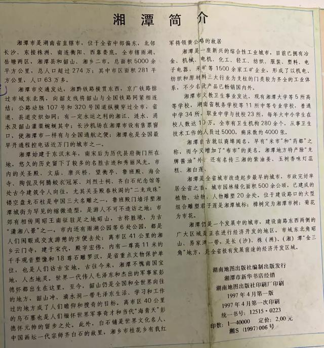 下面這張地圖是強哥2000年去湘潭買的,大家從圖上可以看到湘潭當時的風貌。