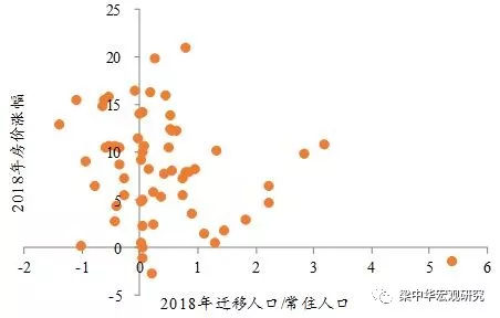 圖表:2018年各地人口遷移比與房價漲幅(%)