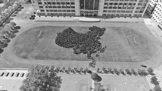 今年是新中國成立70周年,愛國情懷同樣也在莘莘學子心中澎湃。4月25日,平涼二中3500名師生在操場上擺出中國地圖,為祖國70周年送上祝福。