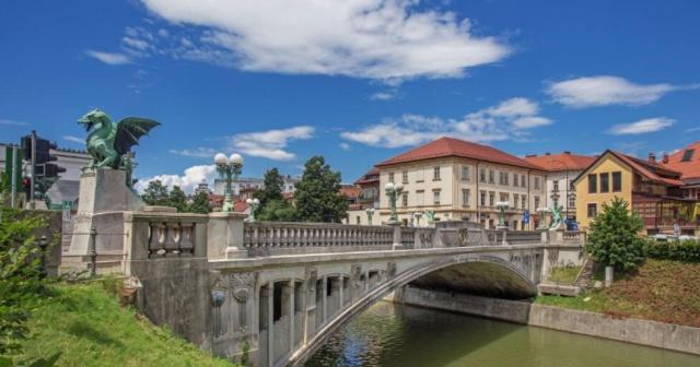 在盧布爾雅那河上,有一座外形古樸、歷史100多年的石橋。橋的兩頭,各有兩座歐洲人心中的龍,所以這座橋被稱為龍橋。這四座龍的雕像均是青銅制的翼龍,它們都張牙舞爪、口吐火焰的樣子。在小編看來,這種龍確實太丑了,遠沒有中國龍的那種騰云駕霧的氣勢。估計歐洲人也覺得這種龍?zhí)罅耍晕覀冎袊俗苑Q龍的傳人時,他們會很吃驚,因為我們心目中的龍和他們的龍完全是兩回事。這座橋其實只有100多米長,幾分鐘就可以走完。但這座橋卻是這座城市標(biāo)志性的建筑,每天有不少游客特意跑這兒來參觀。