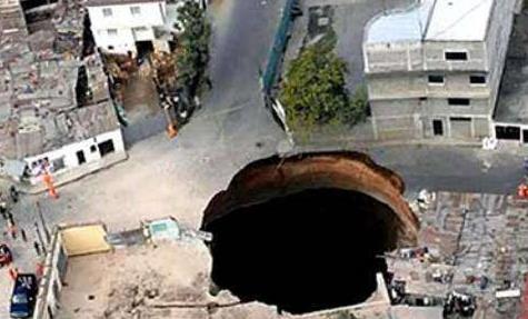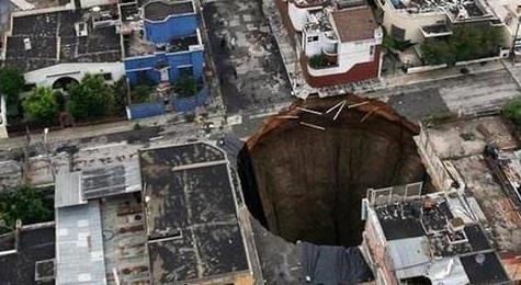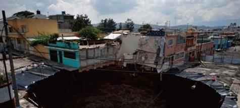 危地馬拉天坑,它位于危地馬拉城市區域。它出現于一零年,是一個長二十米,深度大約為九十米的大坑。這個天坑的突然出現,造成將近十五人的傷亡事故。據有關雜志推測,這個天坑可能是因為熱帶風暴引發而形成的,但也有可能是地下管網的泄漏形成。