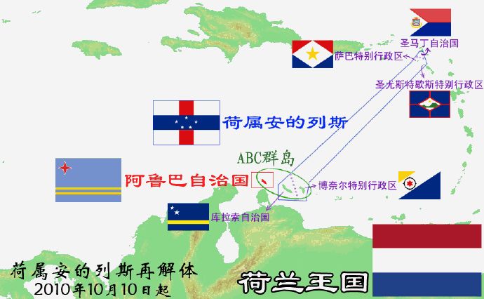 二戰后,荷蘭允許其殖民地獨立。如今,荷蘭的海外領地僅剩阿魯巴和荷屬安的列斯。