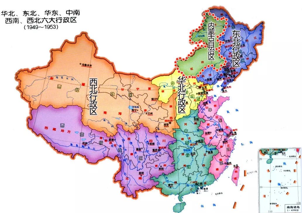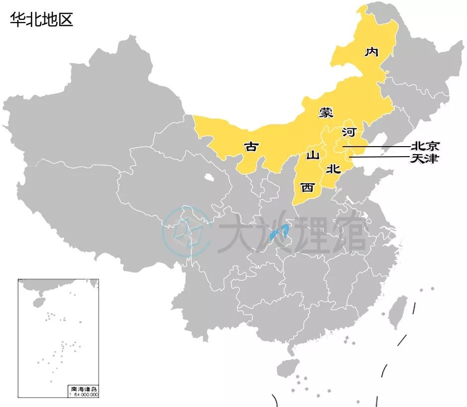 中華民國時期也有過大區劃分,今內蒙古地區在當時大體屬于“塞北”,東部部分地區屬于“東北”。當時的大區“華北”包括今甘肅、陜西、山西、河北、北京、天津、河南、山東。