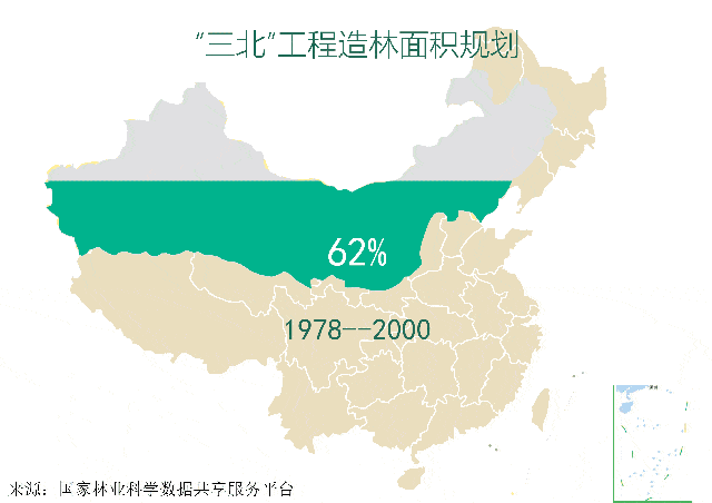 其他省份要么屬西北防護林區,要么屬東北防護林區,要么屬華北防護林區,只有內蒙古跨越了三大林區。