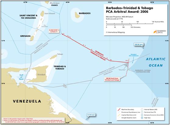 巴巴多斯與特立尼達和多巴哥之間的海上邊界是由2006年的一項仲裁裁決確立的。
