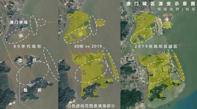 前文詮釋了澳門的縣城格局,但即便如今的格局也是通過大量的填海造城而來。