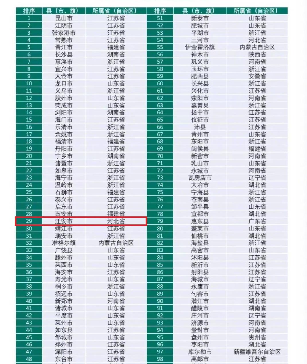 2019年,在全國百強縣排行榜當中,河北省唐山市遷安市位列全國第29位,它也是全省排在第一位的縣級市。