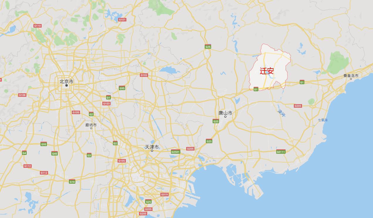 下面就是河北省唐山市遷安在京津冀地區上面的位置。