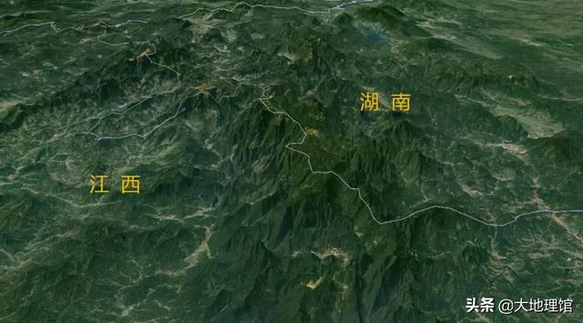 通過帶省界的地形圖,我們可以直觀地看到:江西區域是一個相對獨立的地理單元,除了北部長江河段,剩余的省界幾乎是在跟連綿的山糾纏在一起。曲折蜿蜒的省界,幾乎沿著山脈的山脊游走。