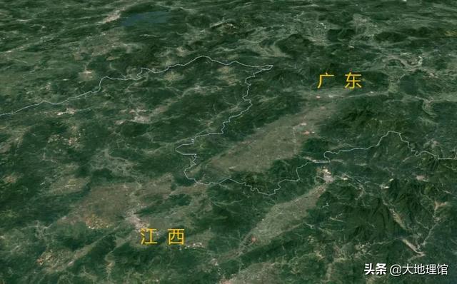 南部邊界,穿行在南嶺的組成部分大庾嶺、九連山之間——南嶺不僅將廣東與江西隔開,也是長江流域和珠江流域、古代江南和嶺南地區的天然分水嶺。