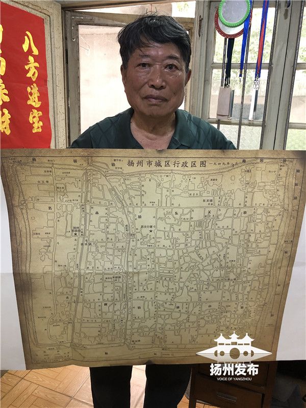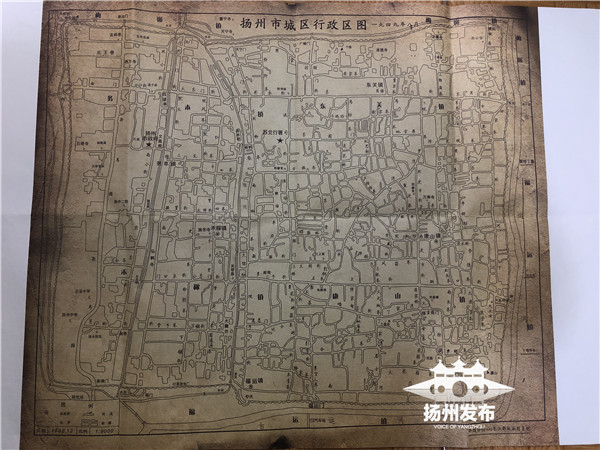 “只要是揚州發行的地圖,我基本都收藏了。”王繼宗拿出一張泛黃的“揚州市城區行政區圖”,上面清晰地寫著,“一九四九年八月”。