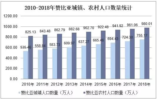 華經產業研究院數據顯示:2018年贊比亞人口總數為1735.18萬人,同比增長2.91%;其中城鎮人口數量為755.17萬人,占總人口的比重為43.52%;農村人口數量為980.01萬人,占總人口的比重為56.48%。