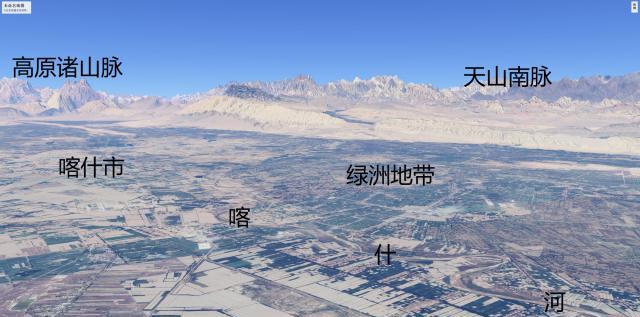 下面我們就來說一說南疆的六大主要城市。喀什又稱為喀什葛爾,是新疆西部最為最要的城市,從圖上看,喀什三面環山,是一個“喇叭口”形狀的河谷盆地,從山谷里流出來的喀什葛爾河穿城而過,帶來的充足的水源在城市的周圍形成了大面積的綠洲,加上高原充足的光照條件,這使得喀什地區是我國最為重要的棉花產地。