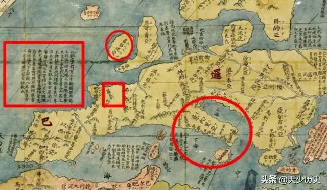 圖中對歐洲各國的具體位置也都已經做出標注,地中海也已命名,就連遙遠的美洲地區,描繪得都是非常準確。可見那時明朝時期對世界的認知是非常先進的。