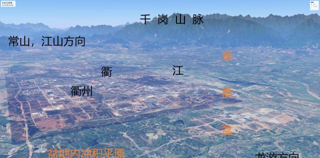 從金華沿著金衢盆地一路西行大約90公里,就來到了浙江的最西端的地級市-衢州市。衢州和江西的上饒,福建的南平和安徽的黃山接壤,是皖贛浙閩四省的交匯之地,也是浙江去往皖贛閩的西大門。圖中彎彎曲曲的衢江,在接納了盆地西端的雨水之后,在金華的蘭溪和金華江匯合,可以通達省會城市-杭州,甚至出海。相信在未來,衢州可以利用自身的區位優勢,能有進一步的發展。