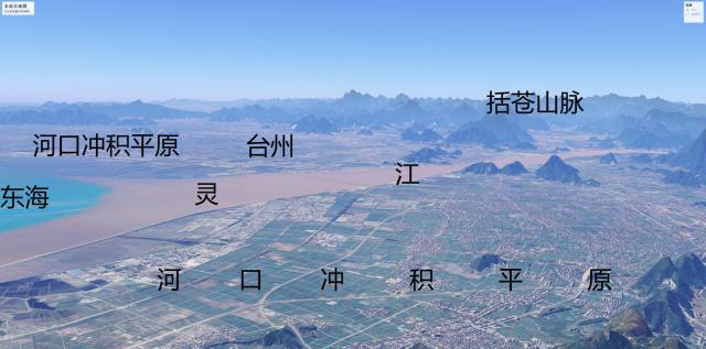 說完了中南部的三個內陸地級市,下面我們再來說說靠海的兩個城市。圖中毗鄰東海的平地就是溫臺平原的臺州部分。臺州市就分布在溫臺平原上靈江的南岸平地之上。平坦的沿海地貌,加上不遠處高聳的括蒼山脈的阻擋,使得臺州在夏季容易受到臺風的侵犯(今年的利奇馬,所帶來的雨水使得臺州里面的臨海市被淹)。