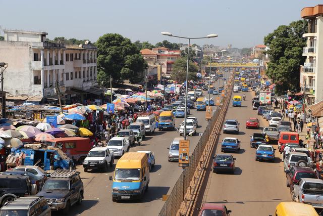 ↑這是11月23日在幾內亞比紹首都比紹拍攝的祖國自由戰士大道。大道旁是比紹最大的露天市場。