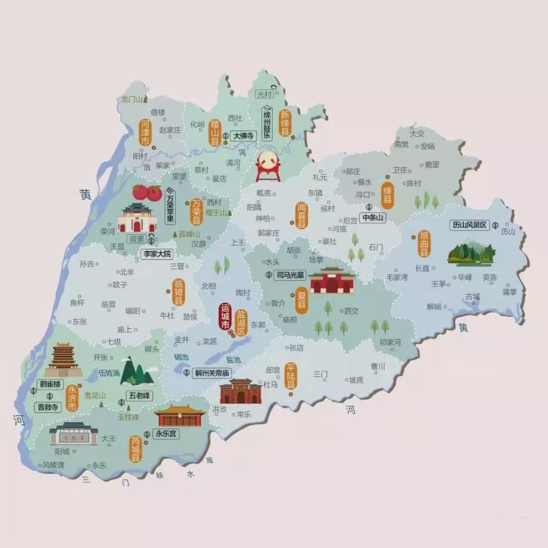 運城因“鹽運之城”得名舜、禹及夏朝的都城均在此這里有春秋商人猗頓、三國名將關羽初唐詩人王勃、中唐文人柳宗元史學大家司馬光、戲曲名家關漢卿等文武俊秀形成了關公文化、根祖文化、鹽文化德孝文化等特色鮮明的地域文化境內有鸛雀樓、解州關帝廟芮城永樂宮等名勝古跡