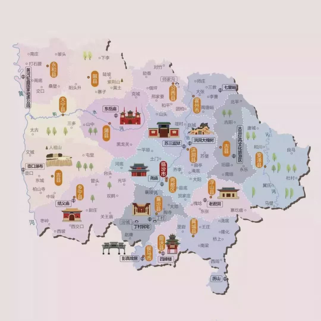 臨汾是中華民族的重要發祥地之一和黃河文明的搖籃有“華夏第一都”之稱臨汾盛產小麥、棉花等素有“棉麥之鄉”“膏腴之地”的美譽臨汾的非物質文化遺產種類繁多有蒲州梆子、威風鑼鼓等被譽為“梅花之鄉”“剪紙之鄉”“鑼鼓之鄉”境內有堯廟、壺口瀑布、洪洞大槐樹等景區
