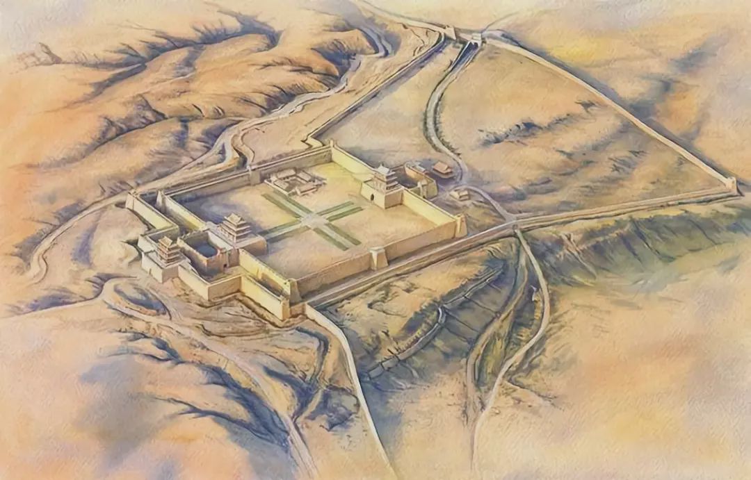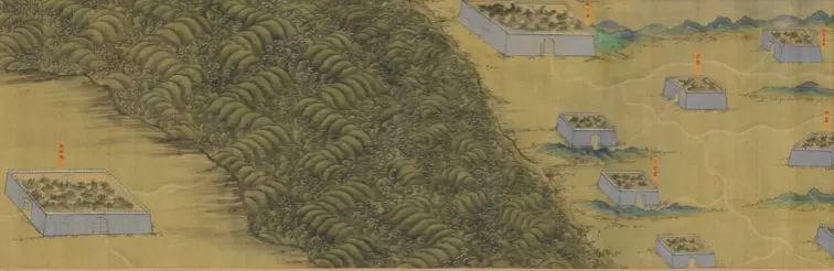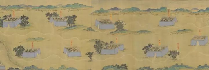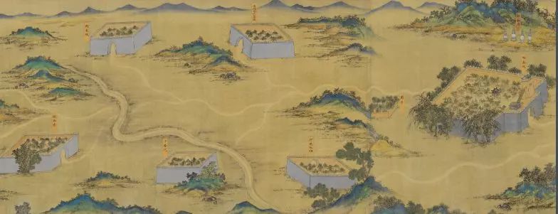 我們也的確可以在這幅山水圖上看到吐魯番城。15世紀中期,這里成為蒙古-東察合臺汗國的實際統(tǒng)治中心。然而,由于參加中亞爭霸和汗庭勢力的衰微,吐魯番的統(tǒng)治者已很難掌控整個西域 。結(jié)果,這個曾被明朝旅行家贊譽的軍事大國,迅速淪為靠過境商賈繳稅的綠洲城邦。為了盡可能的增加朝貢份額,便定期圖謀吞并哈密。雖然在畫卷成型的年代,他們需要時刻提防葉爾羌的新勢力,卻還是如愿以償?shù)膶⑦吘硵U展到河西走廊邊上。