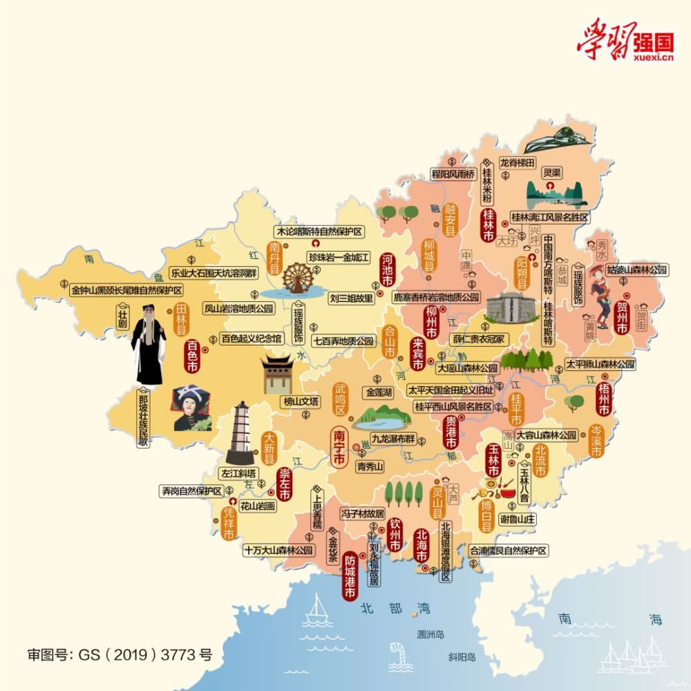 今天小編帶你來看廣西及廣西14個設區市人文地圖,相信看完后,你會對廣西這片土地愛得更加深沉。