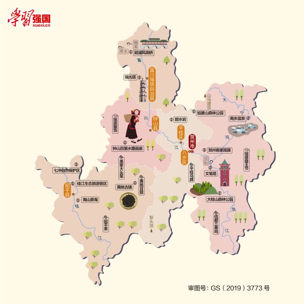 賀州環境優美,資源富集,有“世界長壽市”“粵港澳后花園”“粵港澳菜籃子”“重鈣之都”等美譽。這里民風古樸,是瑤族、壯族等少數民族聚居地,有著多彩多姿的民族風情。壯美的自然山水與悠久的人文勝跡交相輝映,擁有華南地區最大的天然氧吧姑婆山、廣西第一個國家森林公園大桂山森林公園、中國最美十大古鎮之一的黃姚古鎮和石券廊橋的代表回瀾風雨橋等風景名勝。