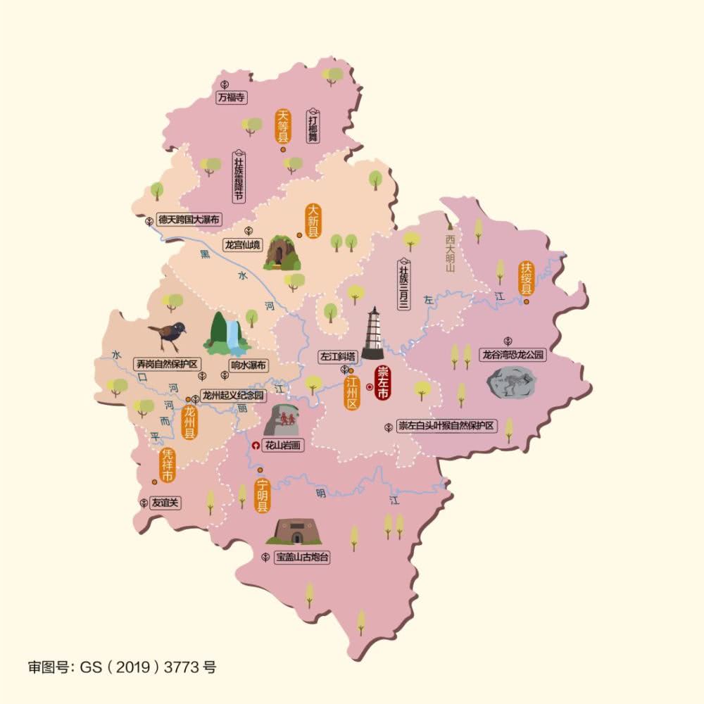 崇左位于我國西南邊陲,是伴隨著中國—東盟自由貿易區啟動而發展起來的新興城市。還是鄧小平等老一輩無產階級革命家早期活動的地區之一,紅八軍的故鄉。這里資源富集,有“中國糖都”“中國錳都”“中國紅木之都”之稱。崇左是享譽中外的旅游勝地,擁有世界遺產花山巖畫、亞洲第一大跨國瀑布——德天跨國大瀑布、我國九大名關之一的友誼關等風景名勝。