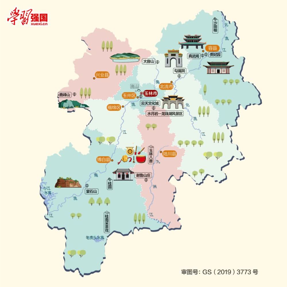 玉林農業發達,物產豐饒,有“廣西糧倉”之稱。丹霞地貌和巖溶地貌景觀遍布,旖旎秀麗的南國山水風光和獨具特色的人文景觀相互交融,被世人譽為“嶺南美玉、勝景如林”,自古享有“嶺南都會”之美名。境內有“天南杰構”真武閣、全國四大名莊之一——謝魯山莊等風景名勝。