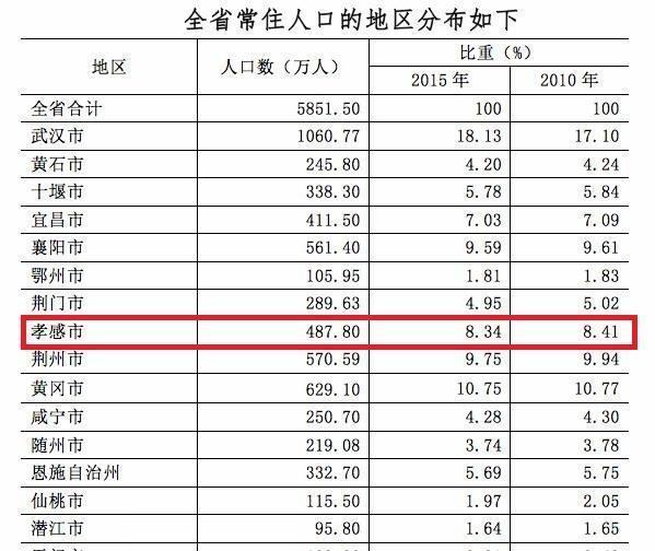 但從下面這張表格上來看,孝感市卻是湖北省的第2位。