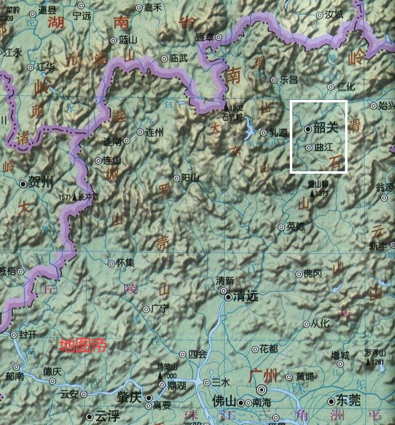 廣東省與鄰省之間多有大山相隔,比如與廣西隔著云開大山等山,與福建省也有鳳凰山等山相隔。廣東省與北邊的湖南省、江西省更不用說了,隔著著名的南嶺。具體來講,廣東省與湖南省隔著九嶷山、瑤山、蔚嶺,與江西省隔著大庾嶺、青云山。韶關(guān)正好卡在廣東省與湖南省、江西省三省交界的中間位置,無論是去湖南還是去江西,韶關(guān)都是最近的。另外,韶關(guān)位于北江之畔,要去廣州,在沒有鐵路和公路的古代,順江南下很快就能到達(dá)廣州。