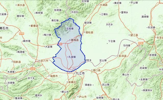 下面是湖北省黃岡市黃梅縣的地圖,它依賴江西省九江市的程度其實更深。